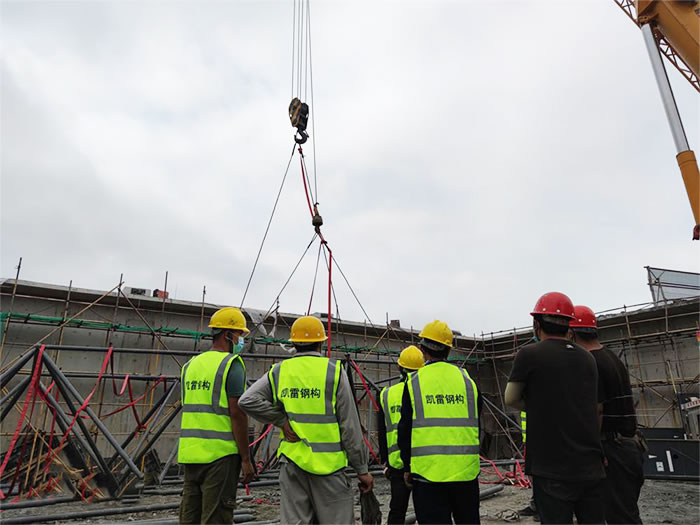 6.为确保.泰兴加油站球形网架安装顺利,应有详细的泰兴施工组织设计。网架安装必须保证结构的稳定性和不产生的附加变形。